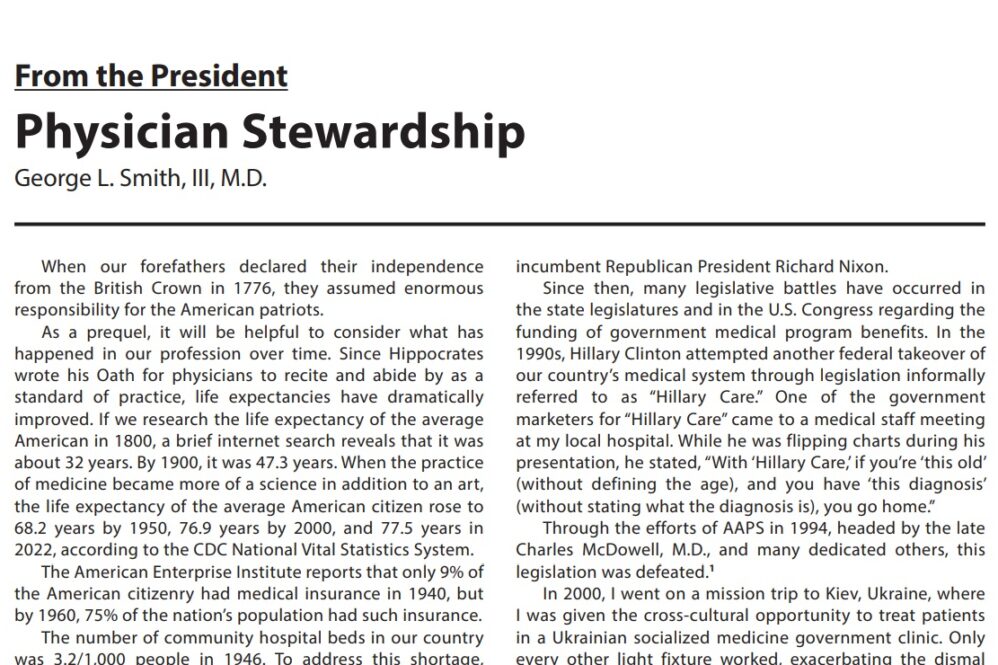 As physician stewards, Dr. Smith states that “we have the responsibility to warn others regarding socialism and communism and help them realize we must solve our own medical coverage problems in a manner that protects the freedoms we hold so dear.”